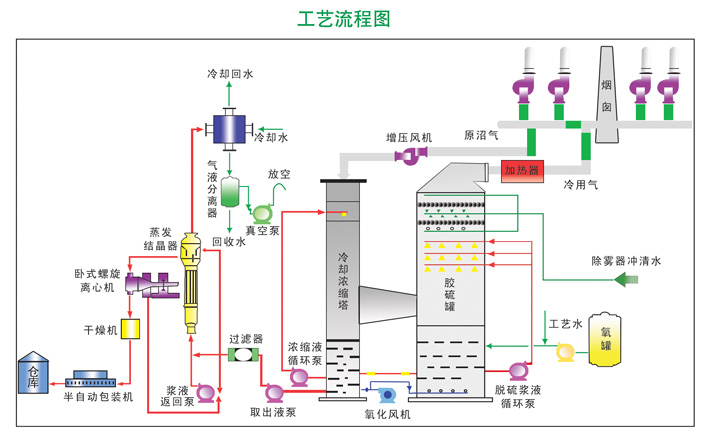 分離,再經(jīng)干燥機進一步干燥,完成煙氣脫硫和脫硫副產(chǎn)物硫酸