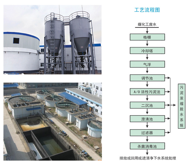 本公司根據(jù)設(shè)計標準和規(guī)范和工程實踐,開發(fā)出煤化工廢水處理工藝。該工藝具有流程適應(yīng)性強、操作簡單、投資少、耗水低優(yōu)點。
